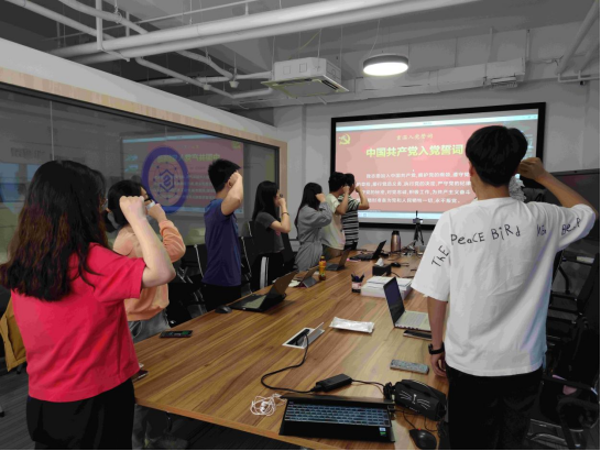 在重温入党誓词环节,高丰奕同志作为AC米兰中文官方网站本科生第二党支部分会场领誓人,带领各位党员同志再次庄严向党宣誓。