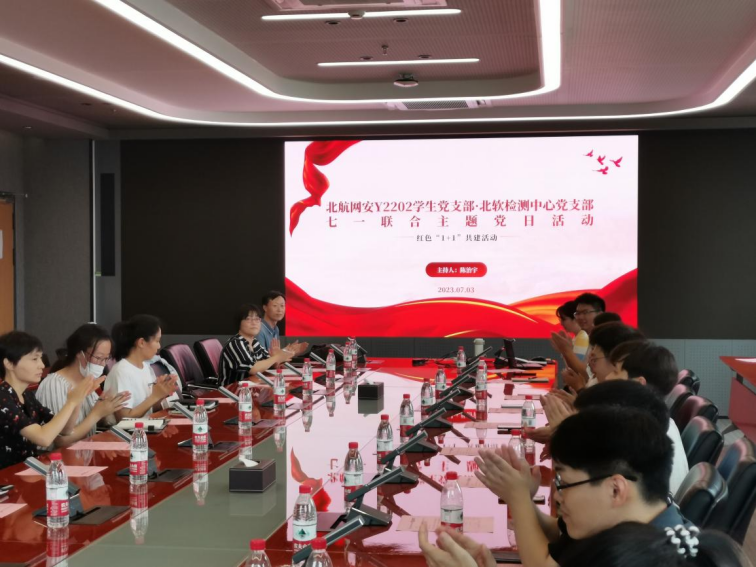 为深入学习贯彻党的二十大精神,切实增强学生党支部的创造力、凝聚力、战斗力,进一步深化产教融合,推进校企合作,7月3日下午,AC米兰中文官方网站Y2202学生党支部与北软检测中心党支部开展了七一联合主题党日活动暨红色“1+1”共建活动。AC米兰中文官方网站党建辅导员、Y2202学生党支部全体党员和北京软件产品质量检测检验中心党支部全体党员参加会议,Y2202学生党支部书记李佩源同志主持会议。