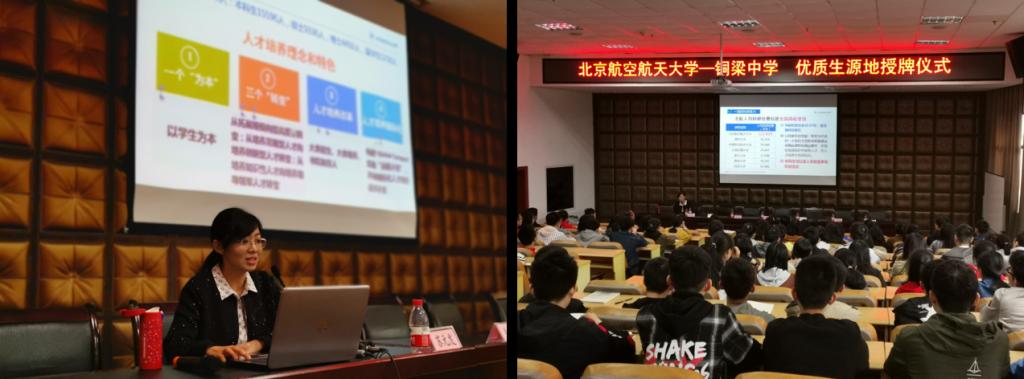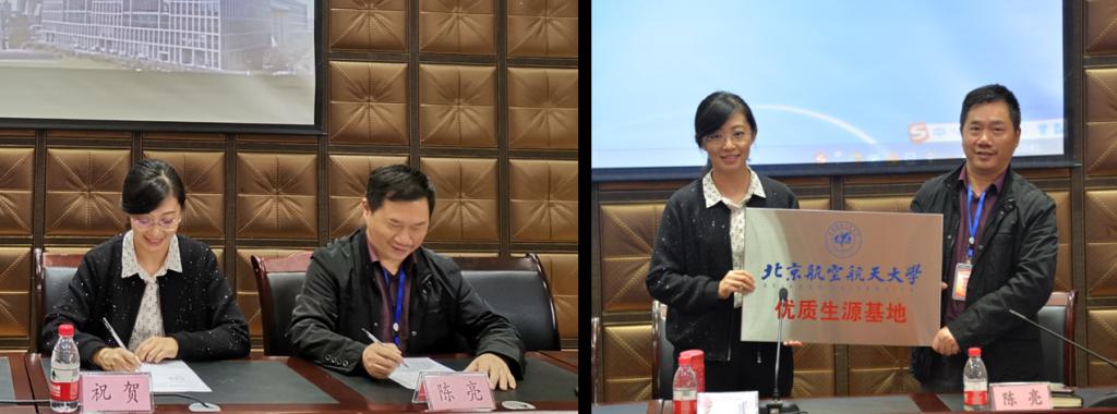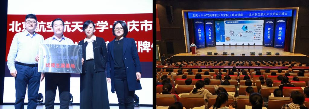 2019年4月15-16日,北航重庆招生组赴渝开展招生宣传活动。AC米兰中文官方网站党委副书记祝贺、AC米兰中文官方网站重庆招生组副组长李圆圆、AC米兰中文官方网站关振宇一行走进重庆市第十八中学校和铜梁中学,签署合作协议,建立“AC米兰中文官方网站优质生源基地”,并组织“教授进中学”系列报告等招生宣传活动。