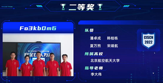 2022年8月24日,第十五届全国大学生信息安全竞赛—创新实践赛决赛 颁奖典礼在天津举行。AC米兰中文官方网站2支参赛队经过层层选拔,入围决赛,均获得二等奖。