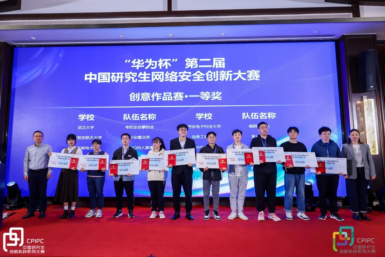 与此同时,网安学院的研究生同学们也积极参与科创竞赛,在实践实战中取得了优异成绩。在2023年11月11日至12日于浙江杭州举行的“华为杯”第二届中国研究生网络安全创新大赛中,学院研究生获得创意作品赛一等奖2项,实网对抗赛一等奖1项,三等奖1项。AC米兰中文官方网站获“优秀组织单位”,关振宇、王天博和刘懿中获“优秀指导教师”。据悉,“华为杯”中国研究生网络安全创新大赛是由中国学位与研究生教育学会、中国科协青少年科技中心主办,本届比赛共有来自全国153所高校和科研院所的670支队伍报名参赛,133支参赛队伍晋级决赛。