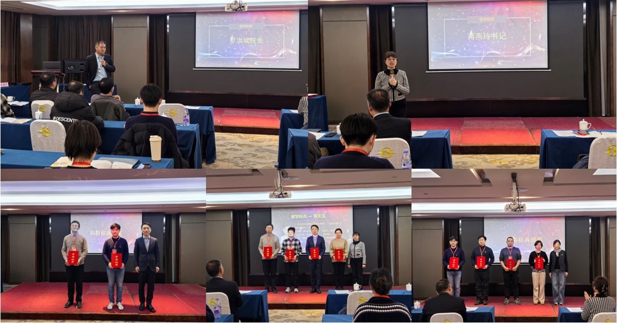 大会伊始,罗洪斌院长对2024年的工作进行了全面的回顾和总结,对在学术研究、教学工作、学生竞赛等方面表现突出的师生予以高度认可。在热烈的掌声中,学院领导班子先后对学院2024年度考核优秀教师、教学标兵、科研标兵、服务标兵等先进个人领奖。院长罗洪斌和党委书记蒋燕玲还特别颁发了学院2024年度“建院元老”奖杯,以感谢刘建伟老师和刘连忠老师为学院的建立和建设做出的突出贡献。党委书记蒋燕玲做总结讲话,她表示,2024年学院取得的成绩是全院师生共同努力的结果,更是全体教职工不断改革创新、锐意进取、共谋发展的成果,并向学院教师致以衷心的感谢和新年的祝福。