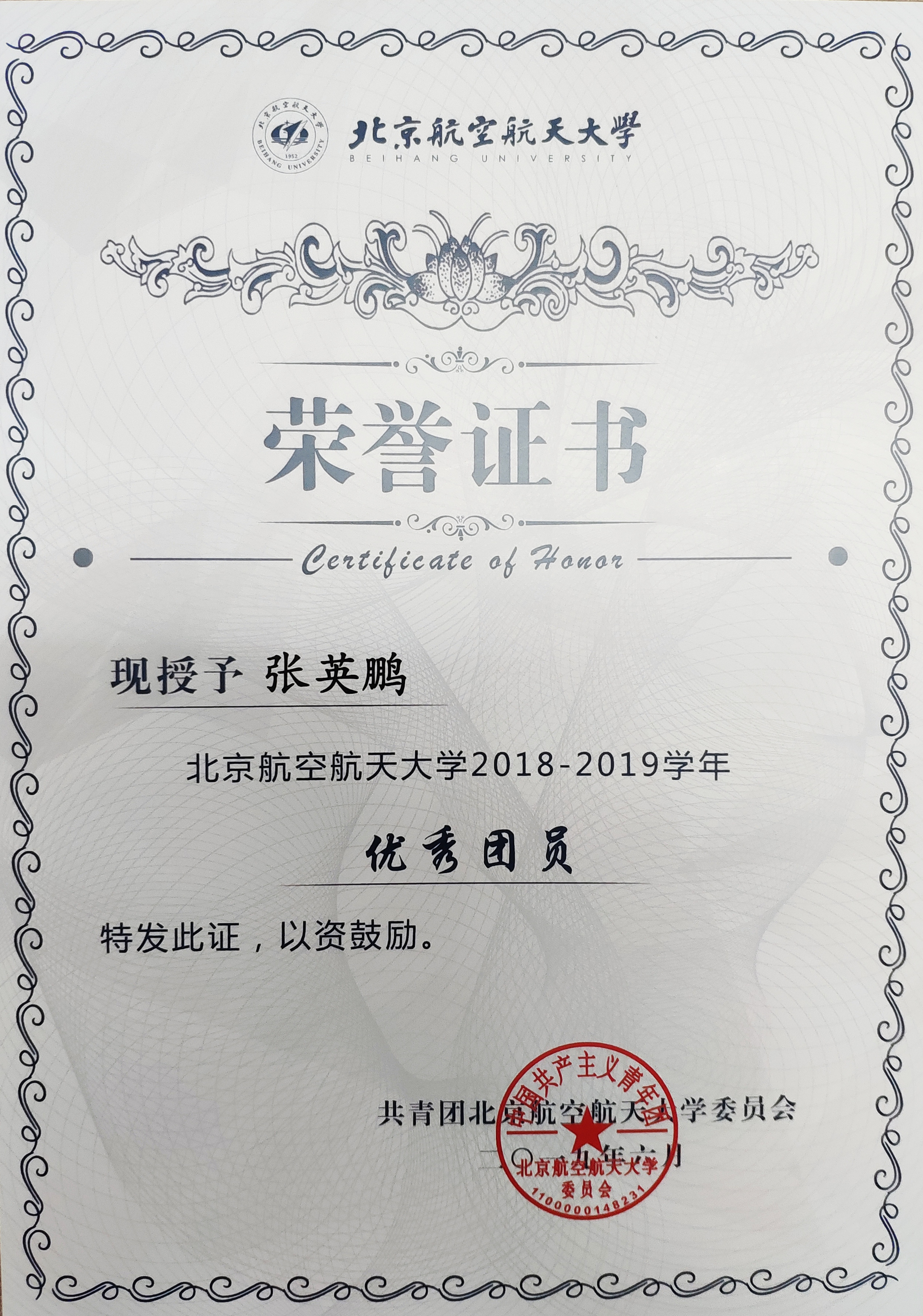 为加强我校共青团的基层组织建设,推动团支部职能化建设,围绕立德树人根本任务,激励基层团支部学习贯彻习近平新时代中国特色社会主义思想,以“四进”为手段,以“四信”为目标,切实学习和践行社会主义核心价值观,弘扬北航“四爱精神”,深入开展“青春心向党·建功新时代”教育实践,创先争优,激励和引导广大团员大力弘扬爱国主义精神,推动各级团组织工作水平的提高。校团委在全校开展2018—2019学年度校 “优秀团员”评选活动,AC米兰优秀学生张英鹏、施继婷获2018—2019学年度校“优秀团员”,予以表彰。