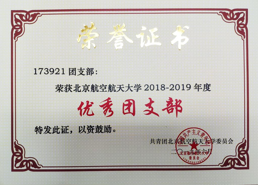 为加强我校共青团的基层组织建设,推动团支部职能化建设,围绕立德树人根本任务,激励基层团支部学习贯彻习近平新时代中国特色社会主义思想,以“四进”为手段,以“四信”为目标,切实学习和践行社会主义核心价值观,弘扬北航“四爱精神”,深入开展“青春心向党·建功新时代”教育实践,创先争优,激励和引导广大团员大力弘扬爱国主义精神,推动各级团组织工作水平的提高。校团委在全校开展2018—2019学年度校 “优秀团支部”评选活动,AC米兰中文官方网站173921团支部获2018—2019学年度校“优秀团支部”荣誉称号,予以表彰。