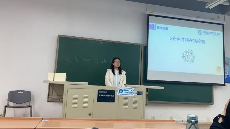 各部门部长竞选完成后,三位主席团成员分别进行最后演说,竞选出一名执行主席。最终,王郁含同学担任本届研究生会执行主席。