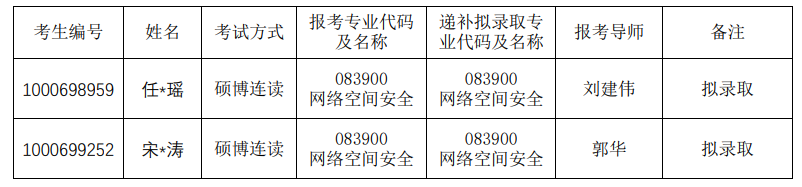 2022年博士招生硕博连读(第一批次)递补录取拟结果公示