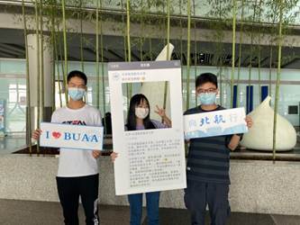 在等待的过程中,为了让新生了解网络空间安全知识,志愿者们提前准备了有关网络安全的小知识问答以供同学们参与互动。新生们全神贯注地完成手上的题目,全对的同学还获得了初入北航的第一份小奖品。此外,志愿者们准备的展板和手幅也备受同学喜爱,拍照留影纪念大学报道之旅。
